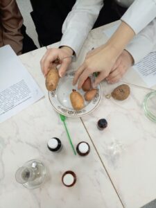 В рамках экскурсий «Агросубботы» для учащихся аграрных групп на базе ГУДОДиМ состоялось практическое занятие, в ходе которого ребята научились обнаруживать крахмальные зёрна, сахар и хлорогеновую кислоту в клубнях картофеля.