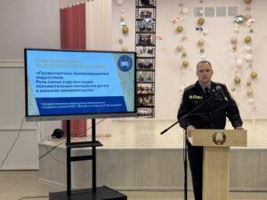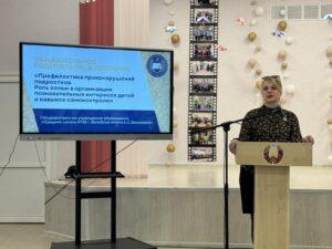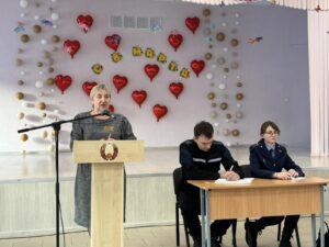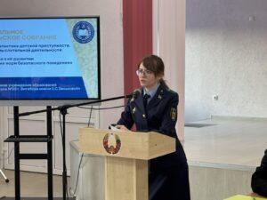 11.03.2026 состоялось общешкольное родительское собрание по теме «Профилактика правонарушений подростков. Роль семьи в формировании познавательных интересов детей и навыков самоконроля». На собрании присутствовали законные представители учащихся 5-7 классов. В работе собрания приняли участие: директор ГОУ «Социальный педагогический центр Октябрьского района» Гиско Ольга Алексеевна ,начальник дежурной смены ПАСЧ №2 ВГОЧС Стычинский Денис Васильевич, старший инспектор ГАИ УВД Витебского Обисполкома Крылов Алексей Александрович, прокурор отдела за дознанием Прокуратуры Витебской области Дербенева Вероника Васильевна, руководство учреждения образования